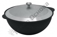 Чугунная кастрюля с толстыми стенками толщиной 8 мм. и полукруглым или плоским дном.