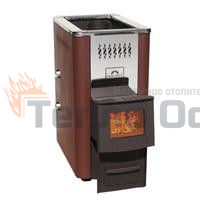 Передняя стенка каменки данной модели выполнена смежной с топочным пространством, благодаря чему площадь поверхностей нагрева увеличилась, что также позволило выровнять степень нагрева передней части топки по отношению к задней. Это в свою очередь обеспечивает более равномерный прогрев камней по всему пространству каменки. Конструкция коллектора позволяет легко производить очистку дымохода и, собственно, сам коллектор от сажи.