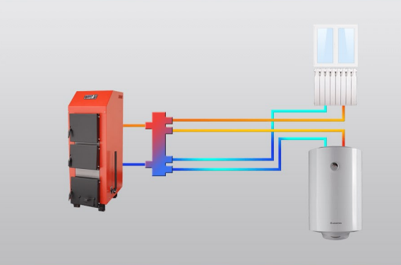 Гидравлический разделитель позволяет обеспечить постоянный необходимый проток теплоносителя через котел, не зависимо от количества работающих контуров отопления.