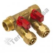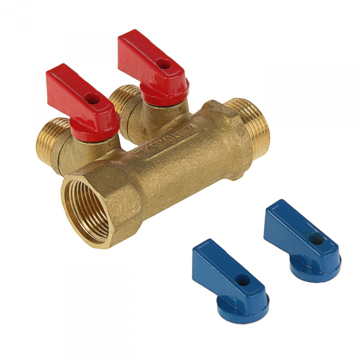 Комплектация коллектора кранами позволяет производить балансировку или отключение любого из контуров. Красные и синие ручки кранов в комплекте.