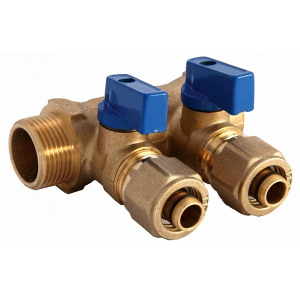 Количество боковых отводов: 2; Артикул: PF MB 266.2; Материал: латунь; Номинальное (условное) давление, PN: 10 бар; Минимальная температура рабочей среды: -20°С; Максимальная температура рабочей среды: 100°С; Соединительная резба: 3/4" вн / нар; Диаметр (наружный) подключаемой трубы: 16 мм.