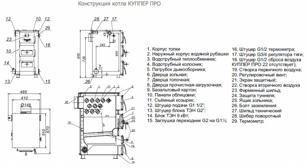Котлы отопительные твердотопливные Куппер ПРО 22 отличаются рядом конструктивных особенностей, которые позволяют им занимать лидирующее положение на рынке отопительных устройств: