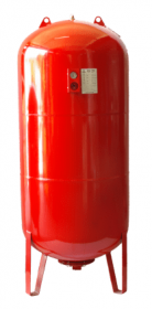 Баки больших объемов от 100 до 1 000 литров имеют полностью сварные соединения корпуса и треножника, устанавливаются на специальный металлический треножник. Соединение с магистралью отопления через резьбовой штуцер с внешней резьбой в верхней части устройства. Покрыты красным эпоксидным порошком (RAL 3002) с 2-х сторон и оплавлены в печи под высокой температурой. Ниппельная система регулирования давления воздуха с защитным пластмассовым колпачком находится в верхней части бака;