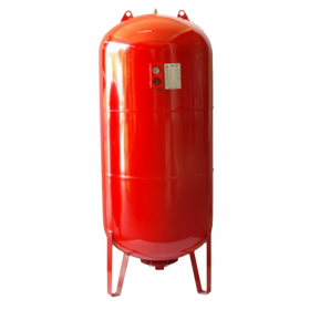 Баки больших объемов от 100 до 1 000 литров имеют полностью сварные соединения корпуса и треножника, устанавливаются на специальный металлический треножник. Соединение с магистралью отопления через резьбовой штуцер с внешней резьбой в верхней части устройства. Покрыты красным эпоксидным порошком (RAL 3002) с 2-х сторон и оплавлены в печи под высокой температурой. Ниппельная система регулирования давления воздуха с защитным пластмассовым колпачком находится в верхней части бака;