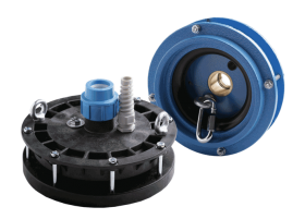 - Крышки со специальными отверстиями под заборный трубопровод и электрокабель, с карабинами крепления монтажного троса для установки и перестановки оголовка;