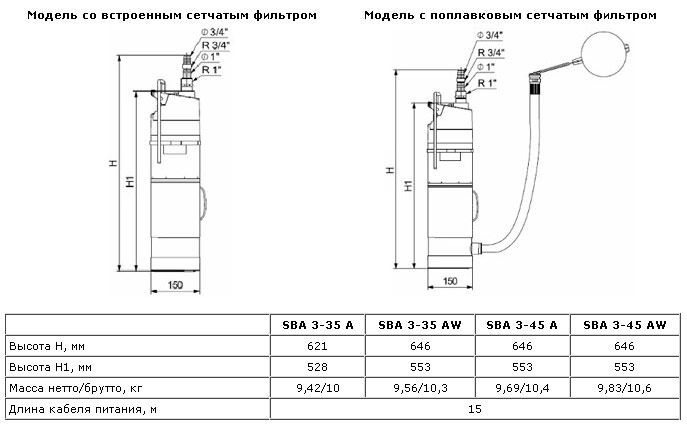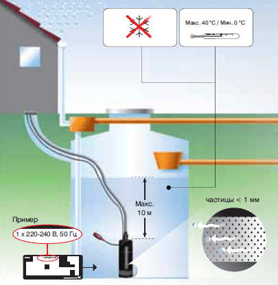 Длительный срок службы (оплавковый выключатель защищает насос от «сухого» хода).рабочие характеристики: