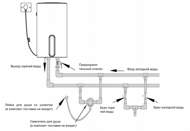 Полностью удовлетворяющее современным санитарно-гигиеническим требованиям эмалевое покрытие электроводонагревателя.Пример установки: