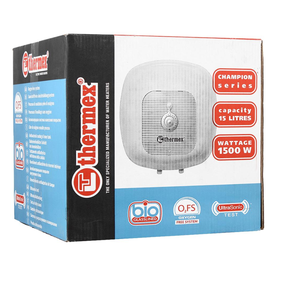 Компактная модель ёмкостью 15л для установки над раковиной. Thermex CHAMPION H 15 O отлично подходит там, где не требуется больших расходов воды, например, для мытья рук или посуды. Увеличенный магниевый анод, предохранительный клапан, капиллярный термостат безопасности, опорный фланец на 5-ти болтах- всё это делает работу водонагревателя безопасной и комфортной. А наружный механический терморегулятор упростит контроль и регулировку водонагревателя.