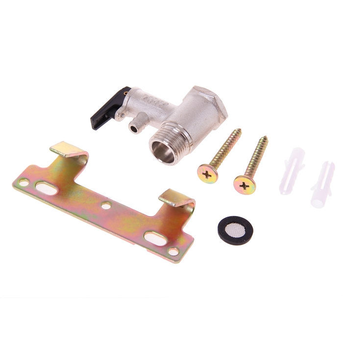 Предохранительный клапан.В комплект поставки входит предохранительный клапан, который монтируется на трубке подачи холодной воды и выполняет следующие защитные функции: предотвращает самопроизвольный слив воды из водонагревателя при отключении подачи холодной воды в магистральной сети; уравнивает давление нагреваемой воды с давлением воды в системе водопровода: при повышении давления в водонагревателе выше давления воды в магистральной сети, клапан открывается и давление понижается до магистрального. при повышении допустимого давления в магистральной сети, автоматически, через дренажное отверстие обратного клапана, происходит сброс избытка давления. На обратной стороне электроводонагревателя расположен кронштейн для крепления к стене.